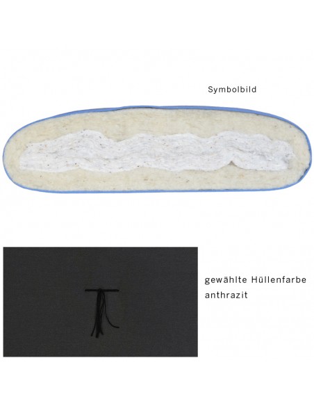 Sato Shiatsu Futon Komfortausführung mit insgesamt 4 Lagen, innen Baumwolle, ummantelt mit Schurwolle, leicht roll- und faltbar. Handgefertigt, Material Öko-Zertifiziert. Vegan Ausführung auf Anfrage. Gewicht bei 200x230 cm: ca. 23 kg. Modell bei Sato ausgestellt.