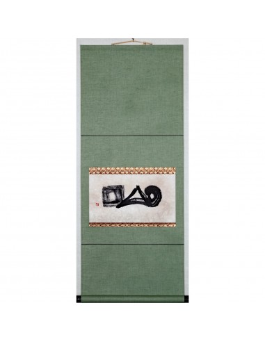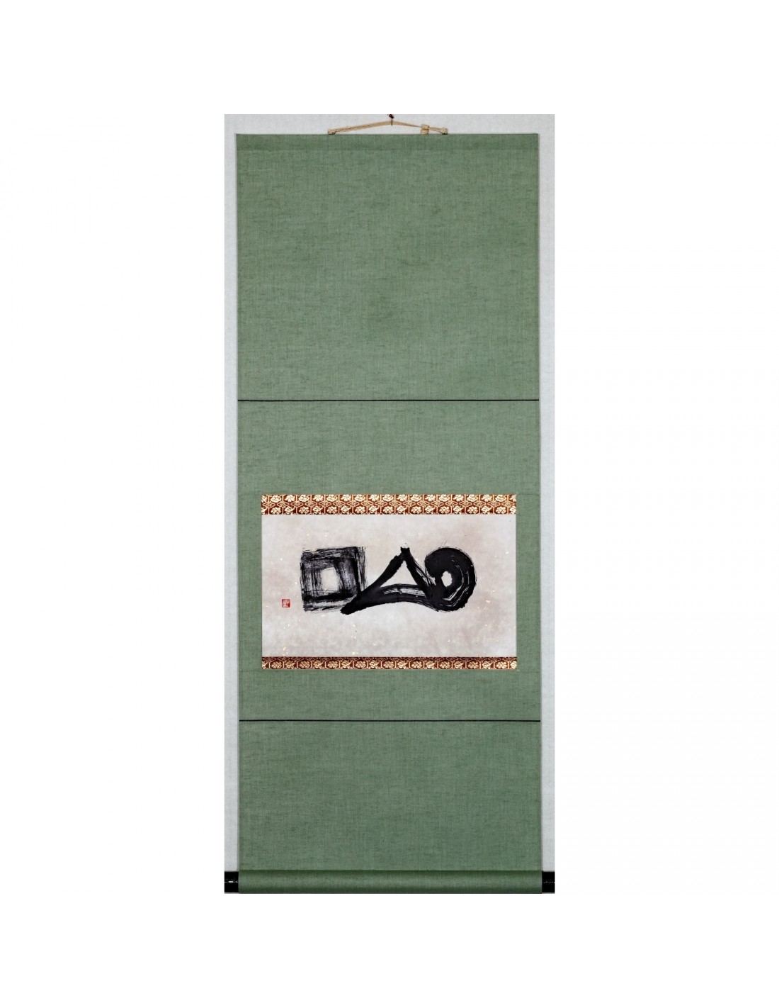 Ink, handmade Japanese paper with gold dust / mounted on silk, ceramic rod / scroll incl. paulownia wood box