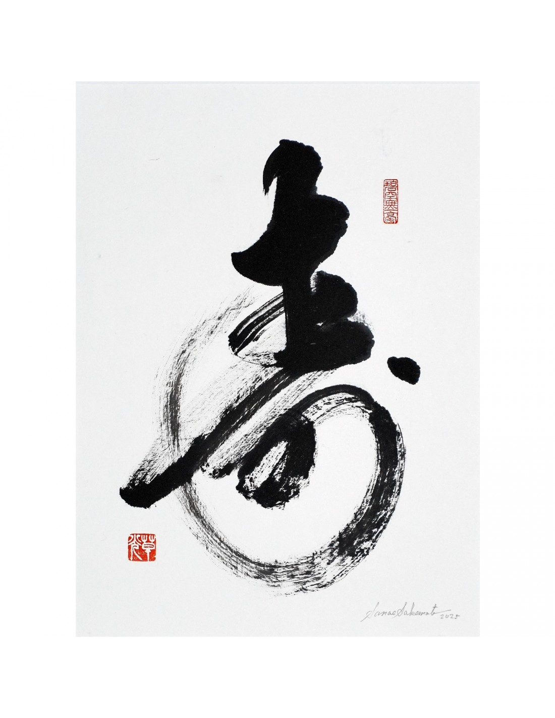 Sanae Sakamoto creates a refreshing artistic language with powerful brushstrokes. Born in Tokyo and living in Switzerland since 1971, the artist combines the profundity of Japanese calligraphy with the virtuosity of Western painting in her work. Trained in Tokyo and Beijing, she transforms Zen Buddhist and Taoist wisdom into expressive compositions. Her works range from large-format, expressive pieces to delicate paintings and intimate calligraphy, with black ink – occasionally complemented by shades of gold, blue or green – remaining her central means of expression. Each of her paintings invites viewers to encounter an art that transcends cultural boundaries.