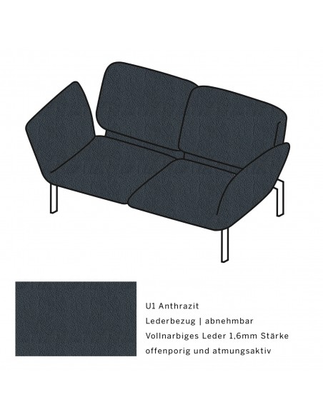 Small fabric and leather samples available on request. Can be ordered via 'Wir beraten Sie gerne'.