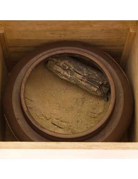The tea ceremony, known as chanoyu or sadō in Japanese, is the ceremonial preparation and presentation of Matcha. It originated in the 12th century with the beginning of green tea cultivation in Japan, and was initially practiced by Buddhist monks. In the 16th century it was perfected by Sen no Rikyū as a stylized art form for which specially designed tea rooms (chashitsu) were built. An integral part of the ceremony is the charcoal-fired brazier, called furo in Japanese, on which the tea kettle (furogama) stands and in which the water for the green tea is heated. The sound of the water boiling in the kettle and the sight of rising steam add to the meditative atmosphere. Traditionally, the coal brazier is used during the warm months of May through October. In winter, the sunken fireplace ro is used. During the Edo period (1603-1868), the production of iron brazier reached its peak. The bulbous shape with three legs and two openings was characteristic of this period. The braziers were usually passed down from generation to generation. In their simple elegance and functionality, the furo reflect the essence of a specific Japanese aesthetic.