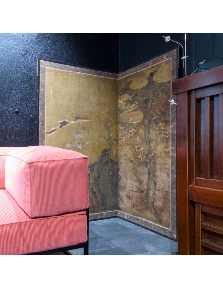 Japanese folding screens, known as byōbu, combine art and functionality. These multi-piece folding screens consist of several panels and serve as decorative room dividers. They are typically decorated with beautiful paintings and calligraphy. Originating in China, the first screens arrived in Japan in the 8th century. Over time, the Japanese developed them into a distinct art form, with characteristic motifs, materials, and production techniques. They reached their heyday during the Momoyama period (1573-1603) and the early Edo period (1603-1868), when they became a status symbol of the samurai. During this period, gold leaf was often used as a background, giving the rooms an aura of wealth and power. The motifs on the screens are varied, ranging from detailed nature scenes to historical events, everyday scenes and allegorical images. As such, they are an important part of art history, reflecting cultural, social and political developments over the centuries. In modern living spaces, byōbu are a practical and aesthetic furnishing element. They serve as stylish room dividers, decorative art objects, artistic contrasts or impressive backdrops. Byōbu can enliven neglected corners of a room. Small byōbu can also be hung like paintings.