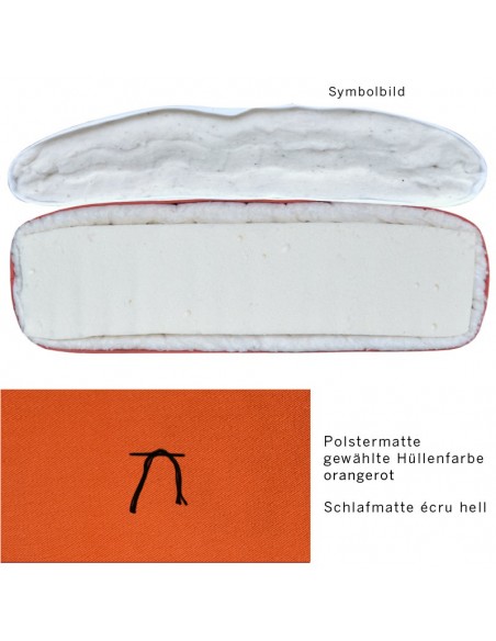For the upholstered mat, the colour of the cover fabric can be selected, the sleeping mat is supplied in light écru.