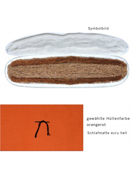 For the upholstered mat, the colour of the cover fabric can be selected, the sleeping mat is supplied in light écru.