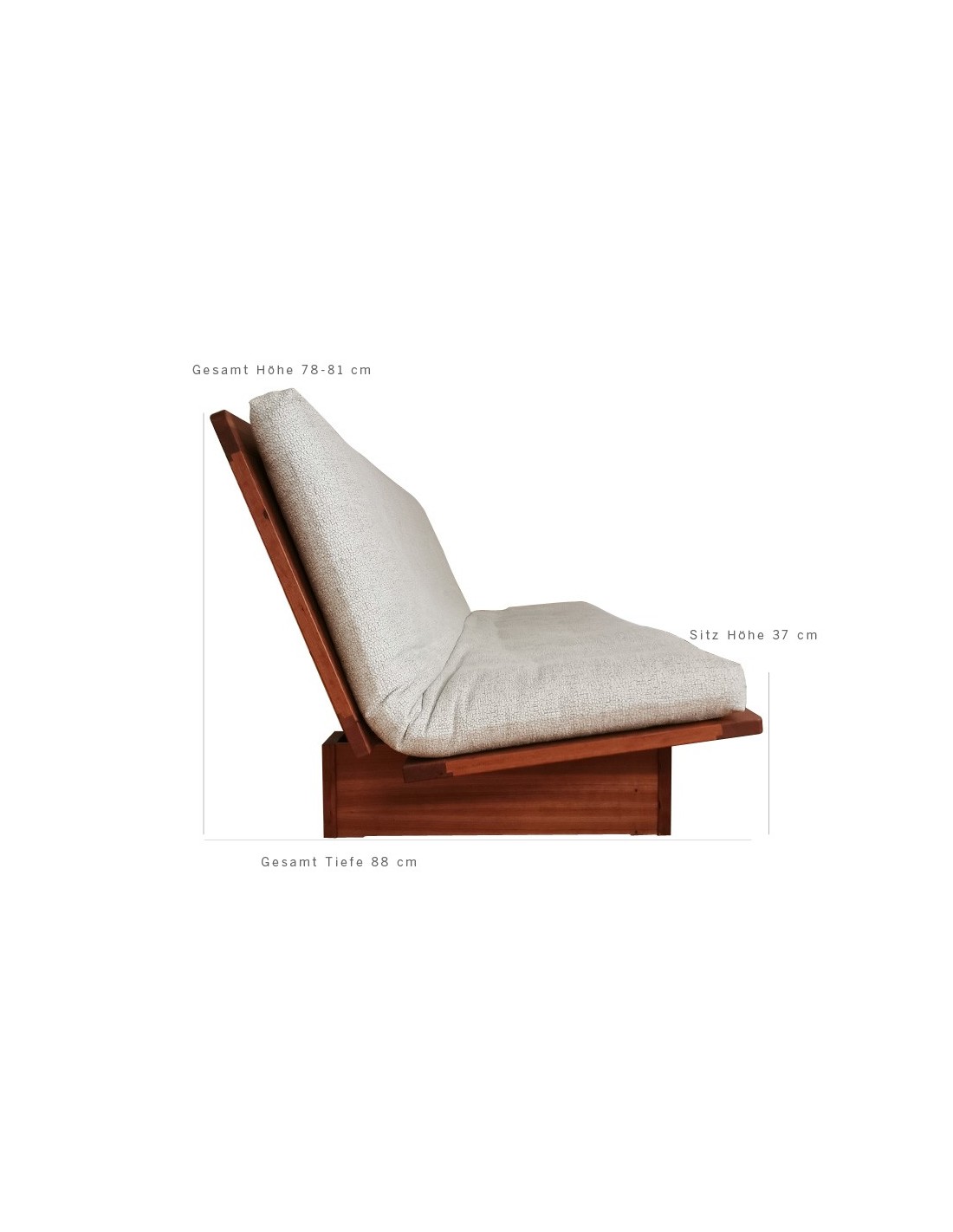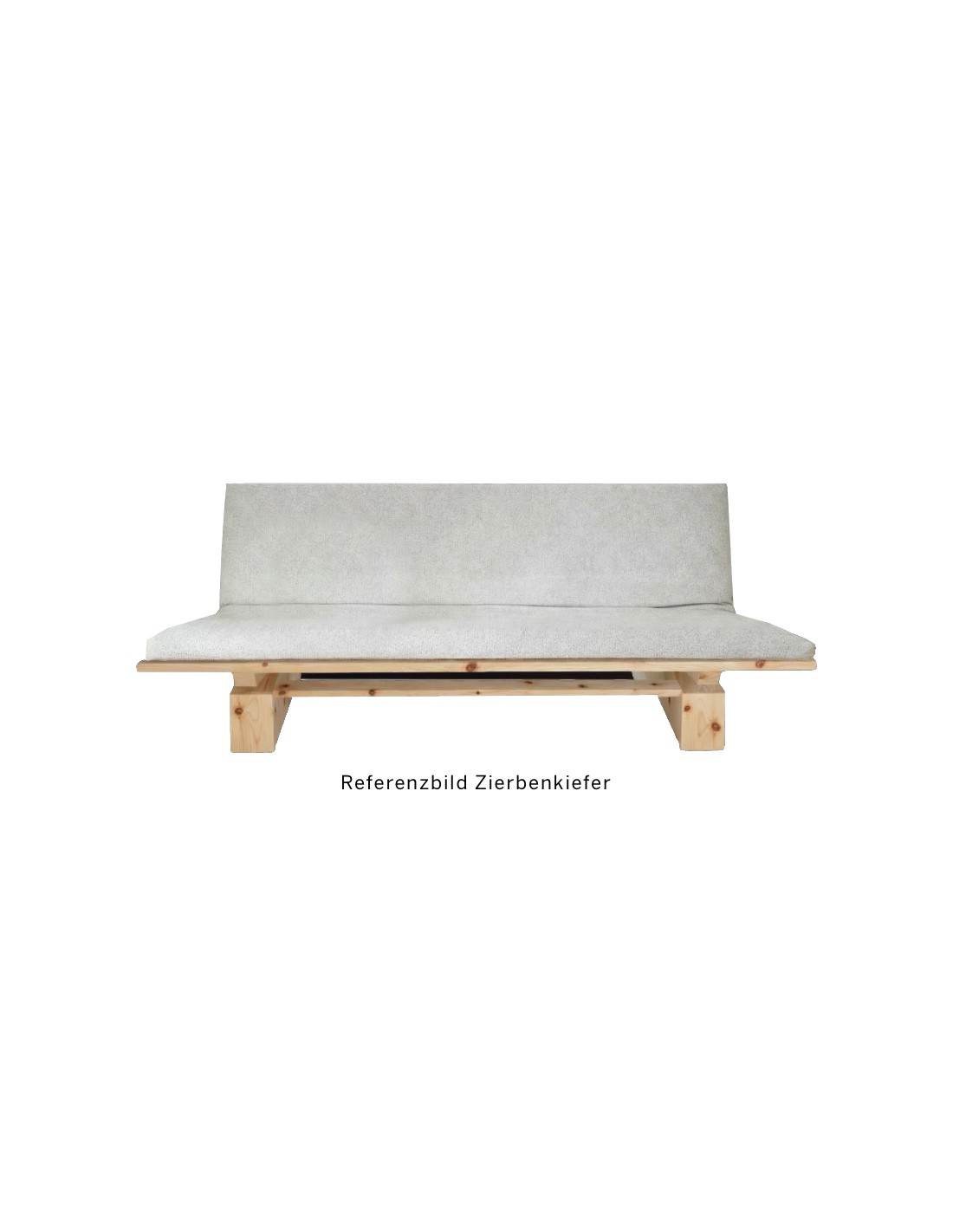 Solid wood sofa bed made from Swiss stone pine (Zierbenkiefer) with high-quality futon. Cover fabric in ecru, non-removable, in original packaging. Removable sofa cover not included. We are happy to advise you.